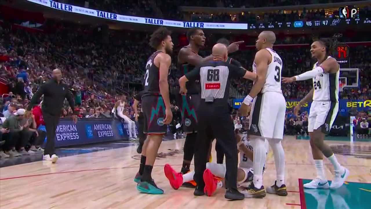 Spurs and Pistons get heated after Cade Cunningham's offensive foul