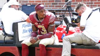TALLAHASSEE, Fla. -- Florida State safety Derwin James suffered a left knee injury in the third quarter of the No. 3 Seminoles' 52-8 win against Charleston Southern and did not return. James is scheduled to undergo an MRI. The school did not have an update on his status after the game. "We'll have to wait and see what the doctors say," Florida State head coach Jimbo Fisher said.  James, a 6-foot-3, 211-pound sophomore, was hurt making a tackle with the Seminoles leading 42-6. He was heavily limping as he went into the trainers' tent and then again to the cart that took him into the locker room. Fisher said he hoped to play his starters for two series in the second half before subbing them out. "You can second-guess yourself all day, but that can happen walking down the street," he said. As a freshman, James was a third-team All-ACC section, and he was second on Florida State in tackles, tackles for loss, sacks, forced fumbles and recoveries. He led the team in tackles and interceptions through the first game of the 2016 season. Florida State travels to No. 13 Louisville on Sept. 17.