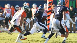 SAN DIEGO -- The team's best offensive linemen dropped his helmet to the floor during halftime Saturday evening, threw down his shoulder pads and let his pants slide to the floor, whatever it took for his body to breathe. Nearby, a group of linebackers and their position coach gathered around a trainer's table, sharing insights about the opposing tight end, but few ideas on how to stop him. The head coach then brought his players together in the middle of the room, and they sunk to one knee. Down by 28 points, he urged them to keep playing hard and win the second half. Just as he stepped back to adjourn the meeting, the players emphatically pounded their chests before starting the long walk back to the field. The scene was typical of hundreds of halftime interactions and pep talks that took place last weekend on college campuses across America, only this one had a unique international layer. The University de las Americas Puebla football team crossed the border to take on the University of San Diego Toreros in an exhibition game Saturday evening -- 16 days before the Oakland Raiders and Houston Texans bring the NFL to Mexico City for the first Monday Night Football game outside the U.S. The Aztecas eventually lost to San Diego 49-25 putting a blemish on their undefeated season back home. Coaches and players from both sides learned a lot about the other, and all agreed they benefited from the experience, even if it just means learning from mistakes.  "It's a good way to measure the level we have over there, and the level over here," said UDLAP wide receiver Robin Israel Gonzalez Carmona, who delivered the play of the night when he scored on a 99-yard touchdown reception in the game's closing minutes. There were plenty of other highlights inside 6,000-seat Torero Stadium, where Jim Harbaugh began his head coaching career and turned the program around from 2004 to 2006 before moving on to Stanford, the San Francisco 49ers and now Michigan. On the opening series of the game, San Diego faced a third down near midfield when UDLAP safety Osvaldo Zumalacarregui Taboada blitzed into the backfield and delivered a jaw-rattling sack on quarterback Anthony Lawrence. Suddenly, the Toreros were tightening their chinstraps. "They came out and hit," Lawrence said. "They were really physical." Thanks to a leaping touchdown catch by Jean Claude Madin Cerezo, the Aztecas managed to keep the score tied 7-7 heading into the second quarter. After a rough stretch of 28 unanswered points, the Aztecas responded to the pleas of head coach Eric Fisher at halftime and outscored the Toreros 10-0 in the third quarter. UDLAP got a safety on an errant snap by the San Diego punt team, and later scored on a sliding touchdown grab by Jose Humberto Noriega Montiel, who finished with 12 catches for 96 yards.  Through it all, the team from Mexico never slowed down. That's what San Diego head coach Dale Lindsey said he'll remember most about UDLAP, a private university located in Cholula, Puebla, about 80 miles east of Mexico City. "They were much better than our players thought they were going to be," said Lindsey, whose team is 7-1 this season in the NCAA Football Championship Subdivision. "They really fought. I really had great admiration for them. They never quit." The Aztecas never stopped having fun, either, and their fans never stopped cheering. After his 99-yard touchdown, Gonzalez Carmona looked up from the water cooler, blew kisses to the crowd and took a bow to acknowledge their glee. Gonzalez Carmona said crossing the border to play a U.S. college team is the perfect barometer for Mexican players and exposes weaknesses that usually don't arise against weaker opponents at home. UDLAP is 9-0 this season against teams in its conference, and most of the wins have been one-sided. He added that the differences between the Aztecas and the Toreros weren't those of size, speed or athletic ability, but rather discipline and detail. "They didn't make mistakes and we did," he said. Indeed, that was the most frustrating part of the game for Fisher, a Kansas City, Missouri, native who began coaching overseas with the Barcelona Dragons of NFL Europe in 2003. He arrived in Mexico City the following year as the athletic director and coach of the American School Foundation, a K-12 private school, and has been in his current position at UDLAP since 2009, amassing a 69-16 record. "We haven't been hit in the mouth like that for a while," Fisher said after Saturday's game.  Like most college coaches, Fisher wants players who are physically strong and mentally tough and who can remember playbooks and recognize opposing defenses. If he can't find them in Mexico, he knows where to find them north of the border. Two of his players, Milton Earls and Jordan Brooks, are from the San Diego suburb of Chula Vista. The idea of playing college football in Mexico never occurred to Earls and Brooks as recently as a couple of years ago. Neither player was heavily recruited out of high school, so they planned to continue playing at the junior-college level. Shortly after their senior seasons, however, they were invited to participate in an all-star game between San Diego-area seniors and the under-19 national team from Mexico. UDLAP had recruiters at the game. Afterward, they invited Earls and Brooks on a recruiting trip. "We were kind of iffy about it at first, because it was playing football in another country, but when we went out there to visit, we had a blast," Earls said. "They offered us full-ride scholarships the same day we went out." Outside of the usual adjustments college athletes face as freshmen, the biggest challenges for Earls and Jordan have been the language barrier and elevation. UDLAP's home stadium sits at 7,000 feet, about 1,600 feet higher than the University of Colorado's. The Aztecas played near sea level Saturday night, but they climbed way up in competition. The Aztecas acquitted themselves well against stout competition, and