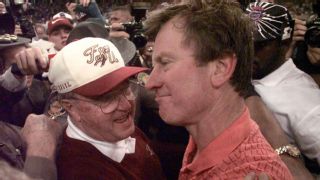 Florida State didn't start accepting men until all those GIs came home from World War II. Florida refused to play the Seminoles until the legislature forced the rivalry down the Gators' gullet. And once Bobby Bowden arrived as head coach in Tallahassee in 1976, we learned why. Under Bowden, Florida State finished in the top five for 14 consecutive seasons, winning two national championships and playing for three others. Jimbo Fisher picked up where Bowden left off. The Noles have the good fortune to be a public university in a talent-rich state. But no one took advantage of that talent quite like Bowden.