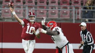 3. Marcus Freeman (Cincinnati) As I referenced on Sunday, SP+ isn't as high on Arkansas as one might have expected so far -- it's hard to thrive long term on forcing perfectly timed turnovers and making fourth-down stops. But after averaging a defensive SP+ ranking of 73rd over the past five years, Odom's Hogs are nearly in the top 50 already. That says something, as does the extreme buy-in you see from every player on that Arkansas two-deep. He deserves all the praise he's gotten so far. Closing thoughts on Alabama-GeorgiaAfter writing what felt like one million words on it last week, I figured I should circle back and share some postgame thoughts on what was, rankingswise, the biggest game of the season to date: Alabama's 41-24 victory over Georgia on Saturday. 1. Mac rediscovered his footwork Sixty minutes is a long time, and not only because a 60-minute college football game commonly lasts 3½ hours or more. It offers good coaches plenty of times to make adjustments, and it gives important players plenty of time to either find, or lose, the plot. Stetson Bennett's last touchdown pass of the evening, a 5-yard strike to Jermaine Burton with 23 seconds left in the first half to give Georgia a 24-17 lead, came with some red flags. He had already sailed three poor passes on the drive, but he had made up for it with a huge third-and-7 completion to George Pickens and the third-and-goal strike to Burton. He had begun to falter in the moment, but it appeared he had gathered himself. At the moment Burton came down with the ball, Georgia led, and Bennett's stat line was quite comparable to that of Alabama's Mac Jones. Passing stats, first 29:37 of the game: Bennett: 12-for-20 for 165 yards, two touchdowns, one interception and one sack Jones: 13-for-17 for 184 yards, two touchdowns, one interception and two sacks Adjusted net yards per pass (ANY/A, which includes sacks, plus a 20-yard bonus for touchdowns and a 45-yard penalty for interceptions): Bennett 7.0, Jones 7.0