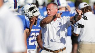 Kelley knows that there's only one way to convince his Blue Hose (PC's mascot, an homage to the stockings worn by its first teams a century ago) that his unconventional methods are worth their study, practice and math skills: winning. When they were 2-0 and setting FCS passing records, there was little complaining to be heard. But leaving the field at Campbell beneath a scoreboard that read 72-0 turned out to be the Camels' straw that broke their backs. Kelly admitted that he made a huge mistake. He knew his non-scholarship squad wasn't likely to hang with Campbell's full-scholarship roster -- likely the toughest opponent they will face this season. But instead of swallowing his disruptor pride and mercifully running out the clock on the ground, Kelley kept slinging footballs downfield, and Campbell intercepted seven of them, including a fourth-quarter pick-six that made it 65-0.