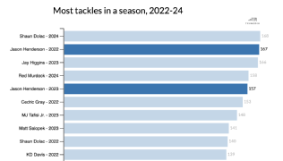 If you squint just right, however, you might see hints of progress. ODU's No. 95 SP+ ranking last year was its best since 2016, and six of seven losses were by a touchdown or less (including a season-opening 23-19 defeat to South Carolina). The Monarchs are in the top half of the conference in returning production too. The offense improved despite having to start three different quarterbacks, and redshirt freshman Colton Joseph looked promising there in eight starts. The offensive line is experienced and physical, and thanks to the return of all-world tackling machine Jason Henderson -- see chart below -- after a 2024 injury, the defensive front six returns four guys capable of double-digit TFLs: linebackers Henderson, Koa Naotala and Mario Thompson and defensive end Kris Trinidad.