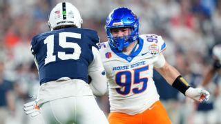 Max Stege, DE, Boise State Broncos Class: Junior Height/weight: 6-foot-4, 264 pounds 2024 stats: 14 games played, 14 tackles, 4.5 tackles for loss, 3 sacks ESPN recruiting snapshot: Three stars, No. 160 defensive end, No. 5 in Europe (Germany) Boise State is the favorite among Group of 5 teams to return to the CFP, but the Broncos must replace several NFL-bound players, including defensive end Ahmed Hassanein, a sixth-round draft pick of the Detroit Lions. Stege, who flashed as a pass rusher late in the 2024 season, is set to take Hassanein's spot, opposite All-America hopeful Jayden Virgin-Morgan. Stege, a native of Cologne, Germany, recorded 2.5 sacks during Boise State's stretch run, including a half-sack against Penn State in the CFP quarterfinal at the Fiesta Bowl. He tied for fifth on the team in sacks despite playing behind two all-conference players. Coach's take: "It's his time now," Boise State coach Spencer Danielson told ESPN. "He's very, very violent at the point of attack. You talk about a guy who takes everything he does at a very high level. He's the guy in the walk-through who you have to tell, 'Hey man, you have to slow down here.' He's extremely explosive and he's very long. He's got a very high ceiling. If he stays healthy, people will know about Max Stege six months from now."
