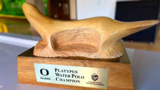 "It's a weird animal. It's weird. It doesn't actually come from a duck and a beaver, but it sure looks like it does," explains Raphe Beck, executive director of the University of Oregon Alumni Association and current keeper of the trophy. "I'm no zoologist, but my understanding is it's just this weird mishmash animal. Also, it's only in Australia, so it's sort of a funny thing for Oregonians to adopt."