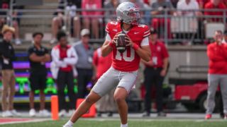 Previous ranking: 1 Freshman Julian Sayin is off to a terrific start through three games, having replaced national championship-winning quarterback Will Howard. Sayin ranks 29th nationally in QBR (77.2) and is completing almost 79% of his throws. Sayin didn't put up big numbers in Ohio State's season-opening 14-7 victory over then-top-ranked Texas. But he was accurate and avoided any big mistakes (sacks or turnovers), which allowed the Ohio State defense to salt away the win. In Week 2's 70-0 victory, Sayin set a school record with 16 straight completions to begin the game. Then, in Week 3, he passed for 347 yards as the offense got rolling against Ohio in the second half after a slow start. Some big tests loom ahead, most notably on Nov. 1 against Penn State and in the regular-season finale at Michigan. But Sayin has impressed so far with his poise and precision. -- Jake Trotter