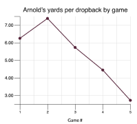 Arnold has completed at least 65% of his passes in three of five games (with zero interceptions on the year). But he has taken at least four sacks three times, and he has taken 14 in the past two games. His protection is poor, and holding on to the ball too long is getting him hit constantly without any threat of big plays (9.7 yards per completion). This is an increasing disaster.