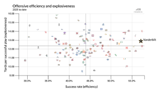 Part of succeeding a legend is that we notice anytime you don't live up to the legend's standards. Granted, Kalen DeBoer has proven adept at continuing Nick Saban's relative success against Kirby Smart's Georgia, but DeBoer's track record otherwise has some holes. He has already lost four games to unranked teams, as many as Saban lost in 17 years. Not great. Saban was particularly good at putting upstarts in their place -- think of Michigan State and Washington in the College Football Playoff. Or Missouri in the SEC championship game. Or Mississippi State every time the Bulldogs thought they were good. He was also good at revenge. His Crimson Tide bopped Tim Tebow's Florida in 2009 and beat LSU by three TDs when they got a second shot at the Tigers in the 2011 BCS Championship Game. They lost to Auburn four times but won the following year by an average of 25 points. You might remember what happened the last time Alabama played Vanderbilt. Vandy has to go to Tuscaloosa this time, which sets up a revenge opportunity. But the Commodores are much better this time. They're 11th in SP+, and they're scoring 49 points per game. Diego Pavia is third nationally in Total QBR (and maybe the second-best power conference quarterback to date), completing 75% of his passes and averaging nearly 7 yards per non-sack carry. Backs Sedrick Alexander and Makhilyn Young are averaging 6.9 yards per carry, tight end Eli Stowers is catching everything and receiver Junior Sherrill has scored on five of his 17 receptions. The Commodores are combining ruthless efficiency with above-average explosiveness.  Because Vandy has so thoroughly taken care of business through five games, Pavia hasn't had to do as much -- he had taken contact 108 times through five games last year (and battled wear-and-tear issues later in the season), but he's at only 65 hits this year. If he needs to run more in the bigger games, he can probably handle it. The Commodores' defense isn't amazing, but it's also better than it was last season. Vandy plays decent run defense with great big-play prevention against the pass; safety CJ Heard is excellent, and linebackers Bryan Longwell and Khordae Sydnor swarm well. Alabama remains an unfinished picture. The Crimson Tide's defense looked downright unprepared in Week 1 against Florida State, but it has allowed only 11.7 points per game since. The Crimson Tide don't create nearly enough negative plays, but they don't give up big plays either, and safety Bray Hubbard keys a frustrating zone defense. The offense has been the star of the show. Ty Simpson looked disheveled against Florida State, but he has been brilliant since, and the Tide are up to sixth in points per drive despite a below-average run game. They couldn't quite close out Georgia after a brilliant first half, but Simpson is incredibly sharp, and the offensive line has shored up a lot of its Week 1 breakdowns. After what happened in 2024, this game is symbolically huge. But it's also just part of a huge stretch for both teams. Alabama just took down Georgia, but five of the Tide's next six opponents rank 17th or better in SP+. At absolute worst, they'll need to win four of six to keep their CFP hopes alive. Meanwhile, five of Vandy's past seven opponents are also 17th or better. Without an obvious quality win yet, they'll probably need to win five of seven. Now would be an apt time for Bama to throw its weight around and remind everyone who's supposed to be the boss. But based solely on 2025 to date, the Commodores might yet be the Tide's equal. Current line: Bama -10.5 | SP+ projection: Bama by 2.5 | FPI projection: Bama by 6.9