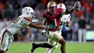 Without the turnovers, however, they might have had a chance. The FSU defense did its part, more or less, losing receivers Malachi Toney and CJ Daniels for a quartet of big gains but otherwise allowing just 3.3 yards per play over 55 snaps and forcing five punts with three three-and-outs. Miami scored just enough that, when FSU's offense finally got going late, the Noles couldn't quite catch up, but without the self-inflicted wounds, the ending might have been much more interesting. Regardless, after a tough overtime loss to Virginia last week -- the Cavaliers beat Louisville in OT as well Saturday -- FSU didn't give itself a shot at a rebound opportunity.