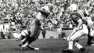 Hayes and the Buckeyes limped through a sustained period of mediocrity (by their standards) in the 1960s, averaging basically a 6-3 record with only one top-10 finish between 1962-67. In 1967, they boasted immense and obvious talent -- All-America tackles (and future first-round picks) Dave Foley and Rufus Mayes, running back Jim Otis -- and a 13-0 win over top-ranked Purdue sent them on their way. They finished the season pummeling No. 4 Michigan 50-14 and easing past No. 2 USC 27-16 in the Rose Bowl for Hayes' first perfect season in 14 years.