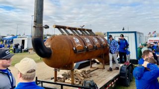 Nick's Hamburger Shop has been open since 1929. Owner Justin Price, who bought it in July and serves as just the fourth steward since the counter-service spot opened, says the SDSU-NDSU rivalry has always been a strange mix of politeness and pride. "I think there's that Midwest friendliness to it until the game starts," he said. "Then after it's over, we just kind of both go our ways." The game didn't kick off until 7 p.m. CT, but a record crowd of 19,477 packed the Jackrabbits' Dana J. Dykhouse Stadium. It was mostly blue-and-yellow-clad fans, with NDSU fans admiring how SDSU has gotten better at protecting its stadium from the invading Bison horde. Fans in striped overalls stood in line for cheese curds and chislic, the "official nosh of South Dakota," red meat cubes (usually beef, lamb or venison) grilled, seasoned with garlic salt and eaten with toothpicks, like a bar snack. All week, there were concerns about the availability of SDSU quarterback Chase Mason, who had injured his foot last week. One local podcaster compared rumors of Mason's health to conspiracy theories about the moon landing. Then the game started, and Mason was on the sideline in a boot. The game was effectively over quickly. NDSU quarterback Cole Payton racked up for 380 yards and four touchdown runs to lead North Dakota State to a 38-7 victory. The Bison had 500 yards, the Jackrabbits just 166. It was a bitter defeat. As the final seconds ticked off, the green and gold sprinted to the corner of the end zone to hoist the 75-pound Dakota Marker. So, it's been settled. North Dakota State has the inside track to this year's national title, with likely home-field advantage in the playoffs. The Bison are now up one more game in the all-important series (12-10 since the move to Division I). But NDSU fans know South Dakota State will be back at the end of the year. "If their starting quarterback wasn't hurt, it would've made things a little bit different," Bison fan Brandon Miller said. "I still feel we are the better team this year in the grand scheme of things, but it would've been a little bit better ball game today." As fans dispersed, a disappointed Jackrabbits fan, whose team had just lost its four-year-long home winning streak, walked by Miller and his tailgating crew and apologized. "Sorry about that," she said, of SDSU's lack of competitiveness. In the hotel lobby by campus, NDSU fans walked in and saw a group of SDSU fans and apologized to them for the beatdown. "Are you buying?" one Jackrabbits fan said, pointing to the hotel bar. "If we won, we would be." "That's called North Dakota Nice and South Dakota Nice," Miller said. Peterman said games like this are more important now that NIL and the transfer portal have altered the fabric of the sport. "For 99% of them, this is it for their football career," he said. "They're going to be going right back to work. They'll be farmers and doctors and lawyers. That's the heart of America right there."