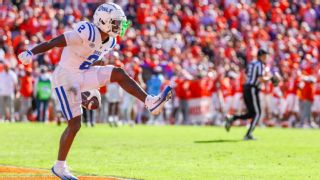 CLEMSON, S.C. -- Duke coach Manny Diaz did not want to chance overtime at Clemson's Death Valley. His team made sure he wouldn't have to. Nate Sheppard had a 3-yard touchdown run with 40 seconds left and Duke followed with a 2-point conversion from Darian Mensah to Sahmir Hagans to win at Clemson for the first time since 1980 with a 46-45 victory Saturday. "Going extra innings at Death Valley isn't really a good plan," Diaz said. Winning in regulation somewhere you hadn't in 45 years? "This is a major step for our program," Diaz said. The Blue Devils (5-3, 4-1 Atlantic Coast Conference) trailed 45-38 and started the game-winning drive on their 6-yard line. Mensah led an 11-play drive in which he converted two fourth downs to set up Sheppard's TD run. There was no hesitation from Duke's Diaz who kept the offense on the field and Mensah quicky found Hagans for the decisive points. It was a quirky game of dramatic momentum swings. Duke looked unstoppable in gaining 199 yards in the first quarter to lead 21-7. But Clemson woke up with three straight TDs to lead 28-21. The Tigers looked in control again with six minutes left until Duke's final drive. "We just stayed poised and showed our confidence," Mensah said. It was another low moment in a terrible season for Clemson (3-5, 1-4), the defending ACC champions and a trendy pick to win Dabo Swinney's third national title. The Tigers have lost four home games for the first time since 1998. They're on pace for Swinney's worst season since 2010 when the Tigers were 6-7 and the coach thought his time at the school was done. Instead, he won eight ACC titles and national championships after the 2016 and 2018 seasons. "I feel like I'm in 2010 all over again," Swinney said. After Duke took the final lead, the Tigers tried a desperation, pass-the-ball-to-anyone-open play as the clock ran out. When Duke finally stopped the play, the sidelines jumped into joyous celebration. After all, it had been more than four decades since the football Blue Devils had left Death Valley with a victory.  Mensah finished with 361 yards passing and a career-best four touchdown passes. Clemson piled up the yards and points, too -- 560 yards and its most points this season -- but could not get the critical stops to avoid a third straight home loss. Cade Klubnik, in his first game back since getting injured against Boston College last month, passed for 385 yards and two touchdowns for Clemson. Receiver Antonio Williams caught 10 passes for 139 yards, running for one score and catching another. Likely NFL first-round defensive lineman Peter Woods added a 1-yard rush off a direct snap for Clemson. Clemson linebacker Wade Woodaz said this season has made him sick. "It's not like we're not practicing. It's not like we're not working," he said. "It hurts." The takeaway Duke: The Blue Devils pulled out all the stops to snap a 15-game losing streak here. They finished 5-of-5 on fourth downs, four of those coming in the first half. Hagans also had a 100-yard kickoff return score in the third quarter. Clemson: Things can't get much lower for the Tigers, on the verge of their worst season of Swinney's 17 full seasons. They play Florida State next week and have road games at Louisville and rival South Carolina. In the ACC mix Duke's late rally kept the Blue Devils in the hunt for a spot in the league's title game next month. Coming off a loss to Georgia Tech two weeks ago, the Blue Devils could've fallen out of the hunt. Instead, they are assured of bigger games ahead. Duke football landmarks The Blue Devils won their fifth straight ACC road game, something they had not done since a stretch from September 1961 through September 1963. Duke had lost 15 straight games at Death Valley since its last win in 1980.