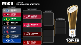 Bracket  SECWould be in: Alabama, Georgia, Ole Miss, Texas A&M  Last team in: Ole Miss. The Rebels are currently in a safe spot, but they're not a lock if they don't run the table. With remaining games against The Citadel, Florida and at rival Mississippi State, there's no possibility of a "good loss" remaining, and historically, losing in November has been far more damaging to playoff hopes than losing early. Ole Miss shouldn't lose; it's favored in each of its remaining games by at least 72% and has the seventh-best chance in the country (55.4%) to win out. If an upset occurred, though, the Rebels would join the two-loss club and might not win a debate with other two-loss teams that had more statement wins -- and didn't lose to an unranked opponent. The Rebels' remaining schedule strength is No. 56 in the country. With a second loss, Ole Miss would be banking on wins against Oklahoma, Tulane and LSU to impress the committee enough for an at-large bid.  First team out: Texas. The Longhorns got a significant boost this week in part because three teams above them fell out -- Vanderbilt, Georgia Tech and Miami -- but also because they earned another CFP top 25 win against the Commodores. The head-to-head win against Oklahoma could also help them in the committee meeting room. If Texas is ranked No. 11 or No. 12 by the committee, though, and the ACC and Group of 5 champions are outside of the committee's top 12, then the Longhorns would be elbowed out during the seeding process to make room for the fourth- and fifth-highest ranked conference champions, which are guaranteed spots in the playoff. Still in the mix: Missouri, Oklahoma, Vanderbilt. The Sooners earned a huge résumé boost with their win at No. 25 Tennessee and have a CFP top 25 win against Michigan. For two-loss Vandy, a close road loss to Texas isn't an eliminator. Missouri's lone losses were to Alabama and Vanderbilt, but the Tigers don't have anything yet to compensate for it. That could change on Saturday with a win against Texas A&M. Out: Arkansas, Auburn, Florida, Kentucky, LSU, Mississippi State, South Carolina, Tennessee