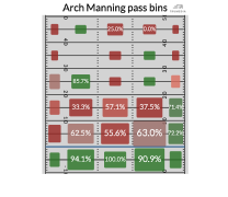 His job has gotten easier now that star running back Jeremiyah Love has fully checked into the season (Love's past three games: 552 yards from scrimmage), but Carr is fourth nationally in yards per dropback and eighth in success rate, and while it's concerning that (a) he has played against only three top-50 defenses (per SP+) and (b) he wasn't very good against two, Total QBR is still opponent adjusted, and he's 10th in that.