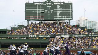Venue trend of the week: Baseball stadiums Normally, football being played in non-football stadiums is reserved for bowl season. In Week 12, though, Major League Baseball venues hosted not one but two college football games. Nearly 1,000 miles apart, two of the sport's most historic ballparks spent Saturday trading bats for pigskin. At Fenway Park, the Secretaries Cup rivalry between the Coast Guard Academy and Merchant Marine Academy was played at a neutral site for the first time. Meanwhile, in Chicago, Northwestern welcomed Michigan to Wrigley Field -- and brought a home run-themed celebration to suit the occasion.