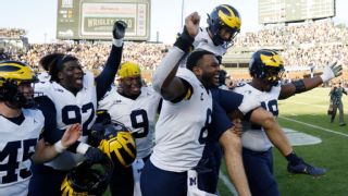 In Week 12, college football said, "You're going to miss me when I'm gone." The results were consequential enough: No. 4 Alabama went down at home in the funkiest fashion imaginable, No. 5 Georgia pulled off a statement win and plenty of aspiring College Football Playoff contenders -- No. 3 Texas A&M, No. 16 Georgia Tech, No. 17 USC, No. 18 Michigan -- narrowly avoided disaster. But really, this was one of the best college football weekends of the season because the football itself was just so damn good. Tuesday night's MACtion was incredible. We got beautiful ACC nonsense Friday night. The noon and 3:30 p.m. ET shifts gave us a number of heart-stoppers, and while Saturday evening wasn't particularly dramatic, we still got a rush-off between Missouri's Ahmad Hardy (300 yards and three touchdowns against Mississippi State) and Ole Miss' Kewan Lacy (224 yards and three touchdowns against Florida) and an angry, late statement of intent from BYU. Meanwhile, the smaller-school ranks gave us countless overtimes, comebacks and surprises, plus some last-minute playoff berths. In this column, we have a longstanding policy: If a week is just so good that you want to relive it game by game, then we relive it game by game! With stops to explore different playoff and conference title odds, here are my 25 favorite games from one of my favorite weekends of the season.  My 25 favorite games of Week 121. No. 3 Texas A&M 31, South Carolina 30. We'll start with the obvious one. At halftime, after probably the worst half of Marcel Reed's life, I looked up what the worst-ever home loss was for a top-three team against an unranked opponent. Best I could tell, it was a tie between No. 2 Iowa's 24-7 loss to Purdue in 2021 and No. 2 Auburn's 27-10 loss to Arkansas in 2006. Since the score was 30-3 South Carolina at the time, this felt awfully relevant. Reed had misfired nonstop in the first half, going a shocking 6-of-19 with two interceptions and two sacks. Almost any time he delivered a semi-accurate ball, his receivers dropped it. A&M was unbeaten and obviously had a mulligan to give in this one, but it was fair to wonder if the Aggies might drop quite a bit in the playoff rankings, enough to make fans nervous heading into their season ender against Texas.  Some relevant second-half stats: Total yards: A&M 371 (9.8 per play), S.C. 76 (2.9) Success rate*: A&M 65.8%, South Carolina 23.1% Marcel Reed: 16-of-20 for 298 yards and three touchdowns S.C.'s LaNorris Sellers: 6-of-11 for 63 yards and four sacks (net yards in 15 pass attempts: 39) (* Success rate: How frequently an offense is gaining 50% of necessary yardage on first down, 70% on second and 100% on third or fourth.) A&M won the second half 28-0, and the Aggies made things interesting only after a fumbled, goal-to-go trick play kept them from going up 38-30 late. South Carolina had a chance to drive for a shocking game-winning field goal, but that would have required Sellers to stay upright. He was sacked twice, and the Gamecocks turned the ball over on downs. I've been referencing CFP Tiers quite a bit lately -- it's my way of separating teams into groups with similar playoff odds (combining the Allstate Playoff Predictor's odds with odds derived from SP+). Now that A&M has avoided disaster, Tier 1 is pretty much set. CFP Tier 1 odds: Ohio State 99.9%, Indiana 99.9%, Texas A&M 99.9%. While we're at it, the five teams in Tier 2 are also in excellent shape. CFP Tier 2 odds: Texas Tech 94.9%, Georgia 94.8%, Ole Miss 94.0%, Oregon 88.4%, Notre Dame 78.2% There's still some maneuverability here but not much. And honestly, considering Notre Dame is a projected favorite of at least 31 points in each of its final two games (Syracuse and Stanford), I don't see how the Irish are under about 95%. 2. Kent State 42, Akron 35 (OT). Last Tuesday was my favorite day of MACtion in quite some time. We'll get to Western Michigan's win over Ohio below, but Kent State and Akron played an all-timer for the Wagon Wheel. Kent State took a 35-17 lead early in the fourth quarter, thanks in part to four Dru DeShields touchdown passes -- including a 89-yarder to big-play man Da'Realyst Clark (who also has two kick return scores and a touchdown pass) -- but you don't give up the Wagon Wheel without a fight! Akron scored, recovered a perfect, chip-shot onside kick, kicked a field goal, recovered a fumble and tied the game on a 13-yard Ben Finley-to-Israel Polk touchdown and 2-point conversion. And then, after all that, DeShields found Ardell Banks for a 25-yard touchdown on the first play of overtime, Akron went four-and-out, and the Golden Flashes won anyway. The win somehow kept bowl hopes alive for Kent State, which is an incredible thing to say considering the Golden Flashes went 0-12 last season with one of the worst FBS teams of the 21st century, then fired head coach Kenni Burns in mid-April. They have bounced back in a way that should encourage UMass fans, if nothing else -- the Minutemen are on pace for an 0-12 record with nearly the same awful SP+ rating that Kent State had last season. At 4-6, the Golden Flashes probably won't win their final two games to get to six wins (SP+ gives them a 7.8% chance of beating both Central Michigan and Northern Illinois), but SP+ didn't think they would win four games either! Damn the computers! Go Flashes! 3. FCS: No. 11 Harvard 45, Penn 43. Harvard had to take this one twice. The unbeaten Crimson, darlings of the SP+ ratings, trailed 27-14 late in the first half but used a 21-0 run to take control and led 42-33 with less than four minutes remaining. But Penn charged back, scoring a short touchdown, forcing a three-and-out and taking a shocking lead on a 30-yard field goal with just 22 seconds left. That was just enough time for Jaden Craig (390 yards and 3 TDs on the day) to complete three passes and for Kieran Corr to knock in a 53-yard field goal at the buzzer. Harvard has now clinched a share of the Ivy League title, and while their