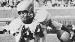 An oft-told legend is that a college football coach, lost during a recruiting trip in Minnesota, asked a farmer for directions to the nearest town. Nagurski pointed the way -- with his plow. As a senior for the Gophers in 1929, Nagurski became the only player ever named All-American at two positions: tackle on defense and fullback on offense. Grantland Rice once famously wrote, "Eleven Bronko Nagurskis could beat 11 Red Granges or 11 Jim Thorpes. The 11 Nagurskis would be a mop-up. It would be something close to murder and massacre." That exemplifies why the Bronko Nagurski Trophy is given to the best defensive player every season. 15. Ernie Davis (RB, Syracuse, 1959-61)