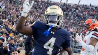 For Notre Dame, style equals separationThe equation for Notre Dame is pretty simple: Continue to separate from Miami. College Football Playoff selection committee chair Hunter Yurachek made it clear after the latest ranking that Notre Dame and Miami, which beat the Fighting Irish in the season opener, are not being compared with the same group of candidates.  Whether that's fair or not is certainly debatable, but Yurachek made it clear that the committee doesn't see Notre Dame and Miami through the same lens. The message to Notre Dame was to destroy Syracuse on Saturday and Stanford next week. Otherwise, how can Miami catch up? The Irish followed through with a historic beating of Syracuse, which they led 70-0 until the Orange scored with seven seconds left. Notre Dame led 21-0 before quarterback CJ Carr even took the field, and finished with 21 more points than Carr had passing yards. Irish running back Jeremiyah Love made his latest Heisman Trophy statement with a mind-bending stat line: 171 rushing yards and three touchdowns on eight (!) carries. Notre Dame recorded its most points since 1932 and its largest victory margin since 1966. And it reached 70 on only 39 offensive plays. Miami also won rather comfortably at Virginia Tech 34-17, but it's hard to see the Canes closing the gap on Notre Dame, which finishes next week at Stanford. The Irish's schedule can and arguably should be knocked, but they did nothing Saturday to lose their grasp on a CFP spot. -- Adam Rittenberg