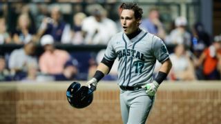 2. Which players are you keeping your eyes on? McGee: Oregon State mashes the ball. The Beavers have the second-most homers of any squad in Omaha -- 103 to Arkansas' 124. But what's impressive about the Beavers is that so many of those knocks have come in the most important situations. Eleven of their 14 runs scored in the supers final vs. Florida State were via the long ball. And they are also equal opportunity round-trippers -- five of their starting nine have double-digit home runs. We all know that shortstop Aiva Arquette is wildly good. He's expected to be the highest college player taken in next month's MLB draft, but the guys around him are pretty good too. Rooney: Murray State center fielder Jonathan Hogart and Oregon State third baseman Trent Caraway head to Charles Schwab Field having hit six home runs apiece in this NCAA tournament. Hogart is a self-made star player in his fifth year of college baseball, hitting his way from Wabash Valley College to Louisiana Tech before coming home to the Racers. He has an incredible 49 extra-base hits this season. Caraway was a high school All-American from a national powerhouse in Southern California (JSerra Catholic HS), but his first two seasons were tamped down by injury, then poor performance. In fact, he was hitting ninth for the Beavers in the middle of May. Caraway is not hitting ninth anymore, and the star sophomore's talent is in full bloom. Burke: As usual, the MCWS is packed with Real Dudes! This year's group boasts players who will be high first-round MLB draft picks: Arquette (OSU), LHP Kade Anderson (LSU) and Golden Spikes finalist SS Wehiwa Aloy (Arkansas), among others. We will also get a front-row seat to watch the player who could be next year's No. 1 pick: SS Roch Cholowsky from UCLA. He was this year's Big 10 Player of the Year as a sophomore and still has another year on campus. This field is loaded with talent! Dellucci: Many experts believe Cholowsky is the No. 1 collegiate player in the nation. He can change the game with both his bat (.376 BA, 23 HRs, 73 RBIs) and glove, which have been recognized by Cholowsky being named Big 10 Player of the Year and Defensive Player of the Year. Coastal Carolina's Caden Bodine is everything you want in a catcher. He's exceptional behind the plate, committing only one error all season, and he leads the offense with a .335 batting average. Bodine showed impressive power by cranking two home runs in the Game 1 victory of the super regionals against Auburn. McDaniel: There are lots of players with 2025 draft implications, with Bodine, Arizona OF Brendan Summerhill, Arquette, Louisville RHP Patrick Forbes, Aloy and Anderson all projected for the first round next month. That said, Cholowsky is the best prospect in Omaha and would likely be the top pick in the draft if he were eligible this year.