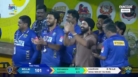 Fireworks in the background and Kovai Kings win by 104 runs and are the champions for TNPL 2023. Players shake hands. Nellai should not be disappointed, as they took the long route did well to reach the Finals. Excellent knocks from Suresh Kumar, Mukilesh and Atheeq Ur Rahman, then with the ball Subramanyan and Shahkrukh settled it for Kovai. Thanks for tuning in. It has been a pleasure bringing you the commentary, do join us for more matches.