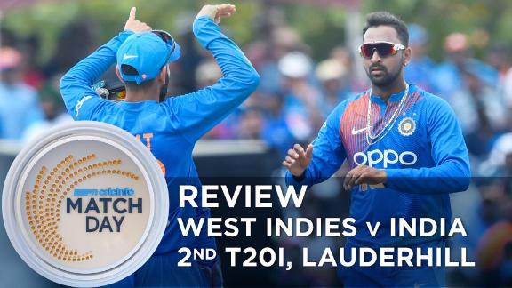 He raised a 30-ball half-century to keep West Indies in the hunt, even as Nicholas Pooran's struggle for timing proved to be an obstacle. Then they lost both Pooran and Powell in the same over to Krunal. This double-strike threw West Indies 22 runs behind the DLS par score when lightning stopped play with the score on 98 for 4 in 15.3 overs.