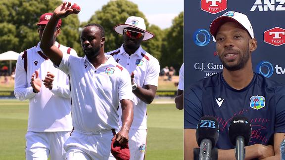 As admirably as Roach played, he also maximised his opportunities. On 30, he was put down by Foulkes at backward square leg when he attempted an expansive sweep off Bracewell. On 35, Blair Tickner, subbing for Matt Henry, missed a direct hit at the bowler's end from a few yards away at short mid-on as Roach was misjudging a run.