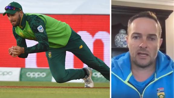 - Drinks: South Africa - 55/3 in 14.0 overs (HE van der Dussen 10, H Klaasen 1)