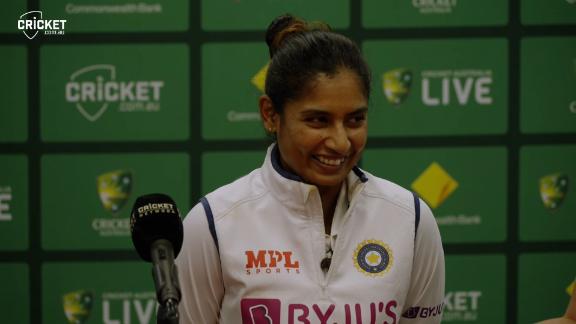 With Mandhana departed, India had two batters together - Raut and Mithali Raj - whose natural game is a more sedate tempo. Raut continued along in her own bubble while Raj, in what is likely to be her final Test, played herself in as the new ball loomed.