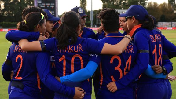 India had gone 60 balls without a boundary off the bat before Ghosh powered Smith through midwicket in the 14th over. Ecclestone had accounted for Sneh Rana two balls before that when England overturned her not-out lbw decision. There was no doubt when Ecclestone trapped Rana in the penultimate over, beating her attempted reverse sweep with one that was tracking onto leg stump.