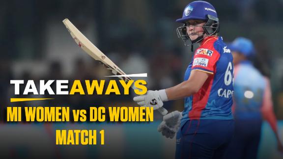 Meg Lanning and Capsey had rebuilt Capitals' innings steadily before the shackles were broken in the first over after the powerplay. Capsey danced down to loft Amelia Kerr over extra cover before Lanning did the same to hit over mid-on. Another legspinner, WPL debutant SB Keerthana, was taken for 13 in her only over. When Lanning and Capsey hit a six and a four in Kerr's next over, Capitals had managed to score 37 in three overs after the field restrictions were lifted. One over after the timeout though, Sciver-Brunt managed to get the better of Lanning.