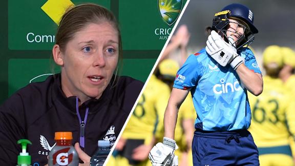 Megan Schutt struck in the first over of the chase when Maia Bouchier lofted to mid-off and England's reply took a huge dent when Heather Knight edged behind with Healy taking a sharp chance standing up to the stumps.