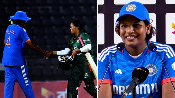 Bangladesh made three changes from the XI that played the third game, but were never in the chase on a sluggish surface. After Deepti handed the first breakthrough for India with the wicket of Murshida Khatun in the fourth over, she went on to dismiss Dilhara Akter (21 off 25). Rubya Haider (13 off 17) was also run out after a mix-up with captain Nigar Sultana in the eighth over.