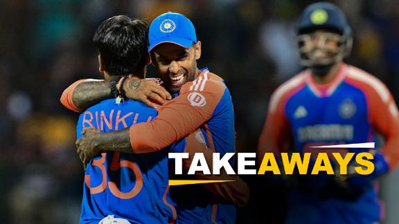 Washington Sundar started the Super Over with a wide. But a single later, he had Kusal Perera and Pathum Nissanka caught at the boundary off successive deliveries. With India needing only three from their Super Over, Suryakumar swept Maheesh Theekshana's first ball towards short fine leg, where Asitha Fernando let the ball through his hands for four.