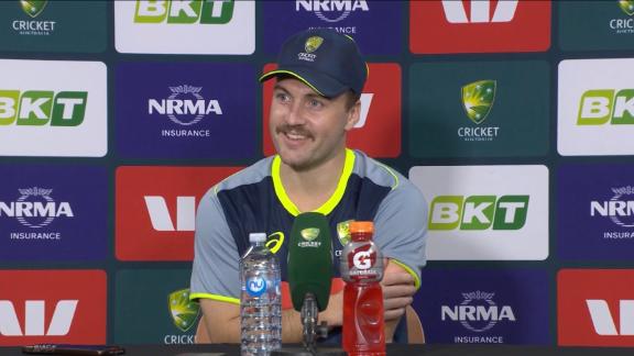 9.2 taken at mid-on! Australia's problems grow. Short of a length, Marsh aiming to pull over the on side as he does so often, but sends it straight up in the air and doesn't get further than the edge of the circle 38/3
