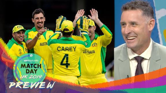 - BATSMENRBM4s6sSR0.2 massive inswinger and Vince has been castled! Shades of Starc to Brendon McCullum in the World Cup final 2015, looking to drive but nowhere near the ball, and huge jubilation for the Aussies! Wow, what a start! If England thought they could shake off their nerves with belligerence, they've got another thing coming! 0/113.5 Bairstow holes out to deep midwicket! That's a flaccid finish to a fighting knock, climbing into the pull but beaten once again by the extra bounce from the lanky Behrendorff! Cummins is lurking back on the rope and England are ever deeper in the soup! 53/43.3 there's the inswinger again! Pace, length, inswing, it's a stunning triple whammy, and though Root thinks of the review, he knows it is utterly plumb! He was simply late on the stroke once again, even though his entire set-up had been primed for it. These are very, very dangerous signs for the world No.1s! 15/25.5 banged in short, Morgan climbs into the pull but that's a top-edge! Cummins steadies himself inside the fine-leg rope, and this innings is in tatters now! The surprise bouncer reaps its rewards. England's fabled depth is going to be tested once again! 26/336.6 that is too good! It was going to take something outstanding to dislodge Stokes, and Starc serves it up with an impeccable off-stump yorker, tailing back in wickedly as it zeroed in on the base of the pole! He kicks his bat away in disgust, but he's done everything he can to keep England alive ... 177/627.2 caught at deep square! What a catch from Khawaja on the rope! Buttler can't believe it! He got a length ball on the hip and flicked it powerfully and flat behind square, Khawaja tight-roped the boundary at full pace, took the catch with two hands running to his right and kept his balance while never stepping on the rope! 124/541.3 a massive wipe over the leg side, but what a catch! Woakes thought he had nailed it, in the arc, a huge heave, but Maxwell tracked back on the edge of the rope, hopped to pouch the ball high above his head, then, cool as you like, lobbed it back to the waiting Finch to complete a routine relay! England, as if you didn't already know it, are sunk without trace in this one! 202/839.3 edged and gone! Moeen's shocking run can't end today, a perfect response. Tightened the line and length, nipped off the seam. met the outside edge of a hard-handed push and Carey swallows the catch! Moeen had to look to be assertive, but that ball wasn't there to be attacked, and he was beaten before his stroke could fully take shape 189/744.4 opens the face again, and it's all over! A spooned drive to short cover, and Australia have wrapped up a 64-run victory and a place in the World Cup semi-finals! 221/1043.3 battered down the throat of long-off! Behrendorff has five wickets, and Australia are one wicket away from the semi-finals! In the slot, but Archer's indifferent batting continues. A new entry for the new-look ODI honours boards 211/9Extras9 (b 1, lb 5, w 3)TOTAL221 all out (44.4 Overs, RR: 4.94)Fall of wickets: 1-0 (James Vince, 0.2 ov), 2-15 (Joe Root, 3.3 ov), 3-26 (Eoin Morgan, 5.5 ov), 4-53 (Jonny Bairstow, 13.5 ov), 5-124 (Jos Buttler, 27.2 ov), 6-177 (Ben Stokes, 36.6 ov), 7-189 (Moeen Ali, 39.3 ov), 8-202 (Chris Woakes, 41.3 ov), 9-211 (Jofra Archer, 43.3 ov), 10-221 (Adil Rashid, 44.4 ov)