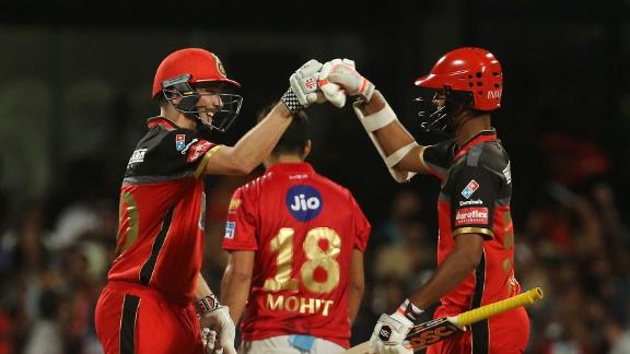 Royal Challengers Bangalore collected two points against Kings XI Punjab, extending the streak of chasing teams winning full-length matches at IPL 2018. Umesh Yadav's three wickets in one over set the game up for the hosts early on, after which the South African duo of Quinton de Kock and AB de Villiers overcame a slight hiccup to take them to a relatively comfortable four-wicket win. The win meant RCB had arrested a five-match losing streak at the Chinnaswamy from 2017.