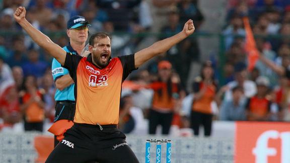 With Thampi proving expensive, and with no Nabi or Deepak Hooda to go to, Williamson needed to find a couple of overs from somewhere, and so he gave Yusuf his first over of the season. With his second ball, Yusuf bowled Ben Stokes, and then Rashid Khan dismissed Jos Buttler for the third time in three T20s to leave Royals needing 56 off 36 balls with six wickets in hand.