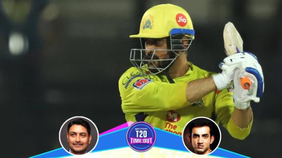 But Tewatia had him and Ruturaj Gaikwad stumped off consecutive deliveries, and Kedar Jadhav's promotion meant Dhoni came in at No. 7 with 104 required off 38 balls.