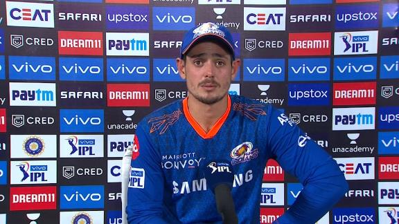 Chasing for the first time in IPL 2021, de Kock's knock ensured Mumbai never let the asking rate become an issue. Krunal Pandya supported him well with a 26-ball 39 as Mumbai reached the target with nine balls to spare.