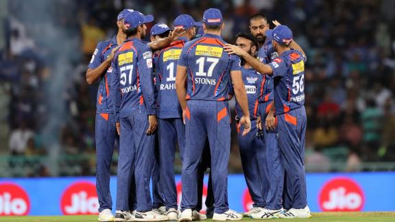 After winning the toss, Aiden Markram opted to bat but his side could post only 121 for 8. Super Giants were without Mark Wood (flu) and Avesh Khan (injured) but Krunal Pandya, Ravi Bishnoi and Amit Mishra ensured their absence wasn't felt. The trio picked up 6 for 57 in their combined 12 overs, with Krunal inflicting the most damage with the wickets of Mayank Agarwal, Anmolpreet Singh and Markram.