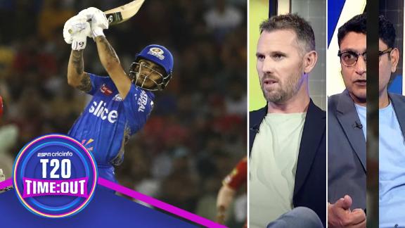 Suryakumar helped thrash 23 off a Sam Curran over - 6, 6, 4, 4 came off consecutive legal deliveries and this final hit got him to his fifty from 23 deliveries. Soon after, Kishan targeted Arshdeep Singh: 6, 4, 4, and the game was almost done. Mumbai needed just 45 from 30 from that point on.