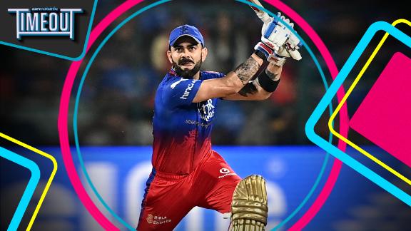 Rajat Patidar, frustrated at not getting anything away, went back to a flatter delivery looking for a hoick to the leg side, but missed and looked back to see his stumps in a mess. Glenn Maxwell then tried to open the off side up but was undone by an arm ball, and could only get an under-edge back on to his stumps. Brar did not concede a single boundary in his four-over spell. In fact, he only went for one double. The rest of it was all singles.