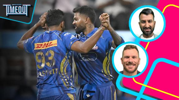 Rachin Ravindra by now felt he had to target the change bowler without a sighter. He looked to go big down the ground, and edged the first ball by Ashwani Kumar. His replacement at the wicket, CSK's youngest player ever, the 17-year-old Ayush Mhatre, injected some life into the innings with flair reminiscent of Dwayne Bravo. It still meant only 48 runs in the powerplay. An unperturbed MI stayed with Deepak Chahar for a fourth straight over, eventually resulting in the legcutter that got Mhatre out for 32 off 15.