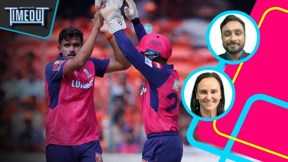 - Strategic Timeout: Rajasthan Royals - 75/5 in 9.0 overs (R Parag 32, SO Hetmyer 3)