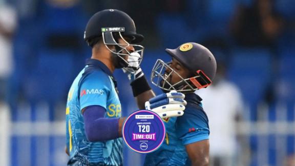 Having come in during the first over following Kusal Perera's dismissal, Asalanka swept his third ball - from Mahedi Hasan, who turns the ball away from him - for four. Next over, he walloped the left-arm spin of Nasum Ahmed - against the turn again - over long off (the shorter side of the ground), before slog sweeping him with the turn for another six. He hit another four off Mohammad Saifuddin, and by the end of the powerplay, Asalanka had 32 off 18 in Sri Lanka' s 54 for 1.