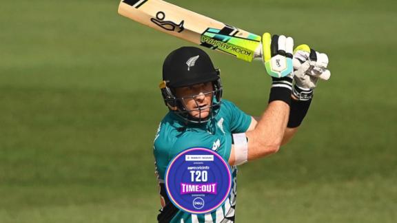 Guptill anchored and then accelerated New Zealand's innings and enjoyed several achievements along the way. He became the second batter to reach 3000 T20I runs when he sent an Alasdair Evans leg-stump half-volley over backward square leg for six. Guptill is second only to Virat Kohli in T20I runs, and is only 156 runs behind. He also became the batter with the most sixes in this format, when he slog-swept Chris Greaves onto the top tier of the stands. That was Guptill's 150th six in T20Is and measured 102 metres, one short of the biggest in the tournament so far. Guptill shared in a 105-run stand with Phillips which formed the spine of New Zealand's total, and was in a good position to bring up his third T20I hundred but was out when chipped Brad Wheal to long-on to end what looked like an exhausting innings.
