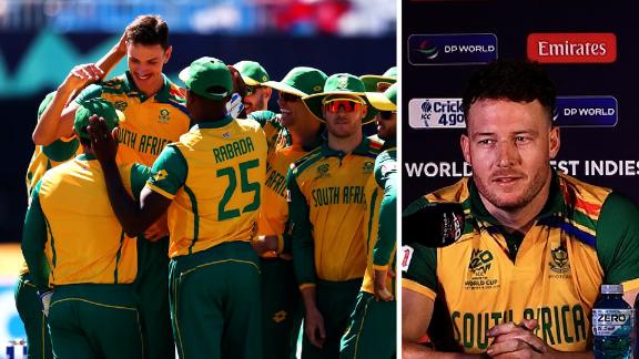 But, with South Africa needing 16 off 12, de Leede erred in line. Miller began the penultimate over by dispatching a half-tracker over fine leg, and then finished the game with a sequence of 2, 0, 4 and 6 - cue a roar and wild fist pumping.