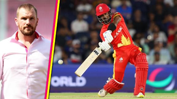 - BATSMENRBM4s6sSR5.2 Slapped off the toe of the bat and it's taken at long-off! Harmeet slowed down the pace after predominantly darting the ball so far, Johnson backed away and tried to belt it off side, but made a bit too much room and lost balance. He was falling over leg side and the bat was going the other way. Easy catch and Harmeet is jubilant. The opener gave his side a good start though 43/114.1 Anderson's first ball in the WC for USA dismisses the well set Dhaliwal. Cutter on a full length angling in and he tried to lash it through the line. The lack of pace meant he was into the shot too early and got it off the bottom of the bat, ball popped straight to Jasdeep at long-off. Again, a good innings from an opener 128/37.6 Pargat returns for a risky second, accurate throw from Jasdeep and the keeper does well to whip off the bails. Run-out referral made. This could be out. Yep, he's a goner despite the full-length dive!. Monank got the throw angling at him, he swayed his hands to the right and dislodged the bails with the batter being about a foot short. Was a length ball that was flicked around the corner, off the back foot. Jasdeep ran to the right and flung the ball at pace. A very flat and fast throw 66/217.5 Full ball has been skewered to cover, Kirton tried to end Canada's boundary-drought by lifting the full ball with an open face but couldn't get under the ball. Front leg was out the way, he got inside the line a bit too mucb as well. Hits it straight to Anderson 159/418.6 They look to sneak another two, throw is in at the keeper's end. Bails dislodged, decision sent upstairs. Bajwa dove forward... but is a few inches short. Bajwa had heaved it to the right of long-on 173/5Extras10 (lb 8, w 2)TOTAL194/5 (20 Overs, RR: 9.7)Fall of wickets: 1-43 (Aaron Johnson, 5.2 ov), 2-66 (Pargat Singh, 7.6 ov), 3-128 (Navneet Dhaliwal, 14.1 ov), 4-159 (Nicholas Kirton, 17.5 ov), 5-173 (Dilpreet Bajwa, 18.6 ov)