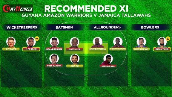 Mujeeb Ur Rahman and Sandeep Lamichhane built on the early work done by Edwards with stifling spells of spin bowling to restrict the Amazon Warriors to 63 for 7 in the 15th over before some late hitting from Imran Tahir prevented the Amazon Warriors from registering their lowest CPL total and got them past 100.
