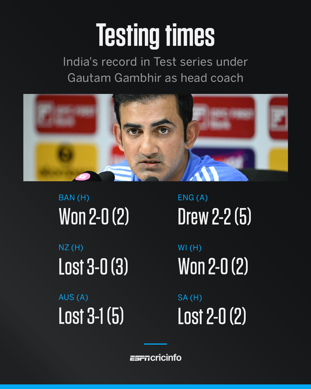 India suffered a 408-run defeat, their biggest ever in Test cricket, in Guwahati